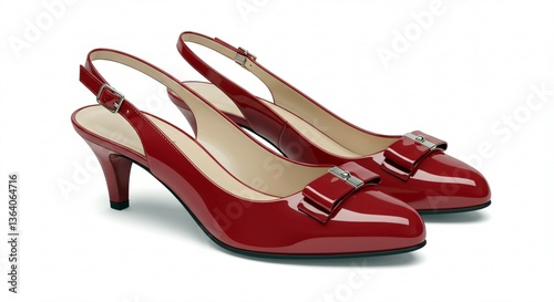 Elegant Red Patent Leather Slingback Heels Low Kitten Heels Bow Detail Women s Footwear