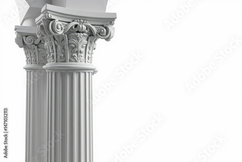 Elegant Roman column detail against pure white backdrop, decoration, sophisticated
