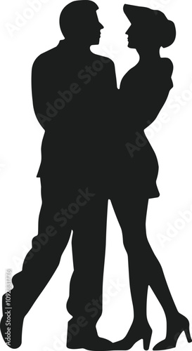 Elegant Romantic Couple Silhouette Embracing Vector Illustration