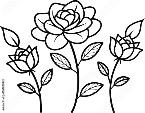Elegant Rose Flower Line Art Illustration for Coloring Pages and Design Elements