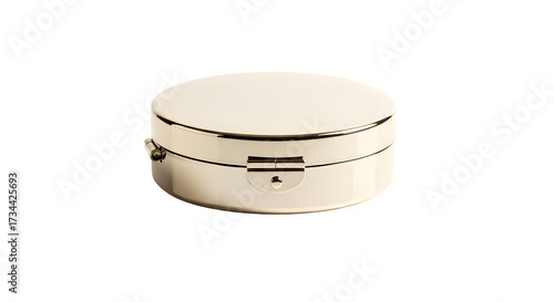Elegant round metal pill box isolated on transparent background, perfect for storing medication or small items with a sleek and minimalist design