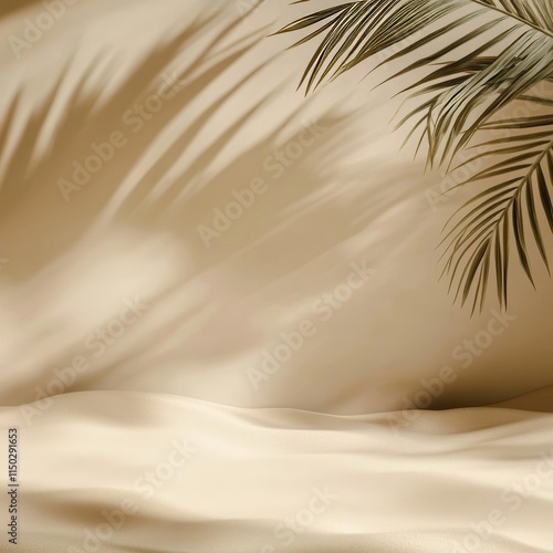 Elegant Sandy Surface and Palm Shadows Create a Serene Atmosphere Perfect for Relaxation and Tranquility in a Sunlit Environment