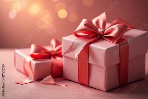 Elegant satin bows adorn luxurious gifts, bathed in soft light , special occasion, satin