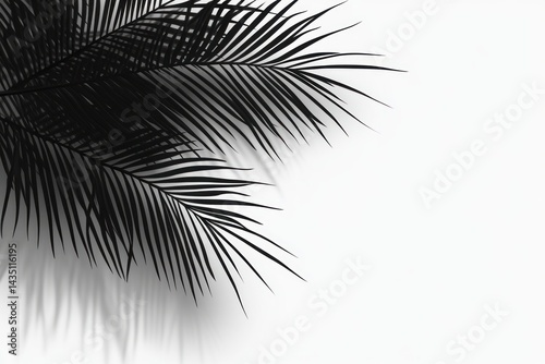 Elegant shadow cast by long palm branches, clean minimal corner design for summer product layouts