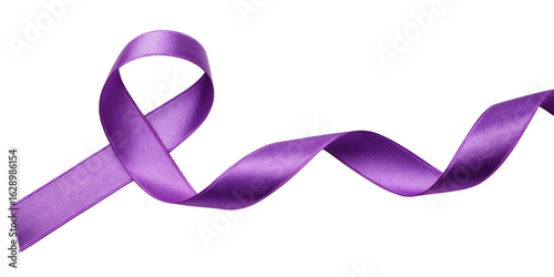 Elegant Shiny Purple Satin Ribbon Curled on Transparent Background Vibrant Purple Ribbon Loop Isolated with Soft Reflections