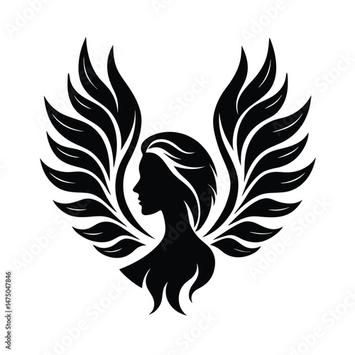 woman, silhouette, angel, wing, leaf, nature, beauty, elegance, floral, feminine, grace, vector, illustration, design, graphic, black, white, isolated, logotype, symbol, art, abstract, stylish, creative, decorative, stylised, modern, minimalist, spa, wellness, feather, growth, flourish