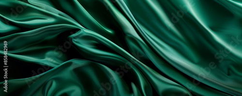 Elegant silk background in a deep emerald green with a smooth, flowing texture. The luxurious fabric adds a touch of opulence and sophistication, perfect for high-end or romantic designs