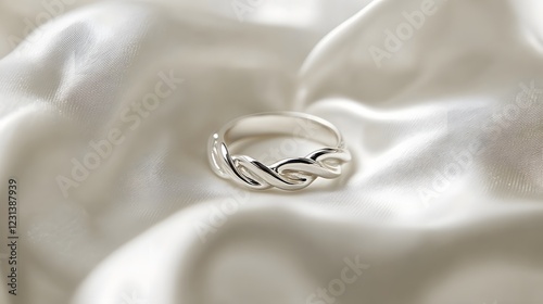 Elegant Silver Ring with Intertwined Design on Soft Satin Fabric