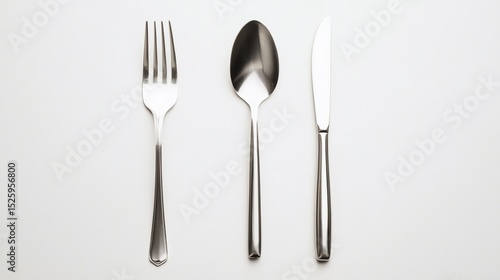 Elegant silverware trio: Knife, spoon and fork isolated on a white backdrop