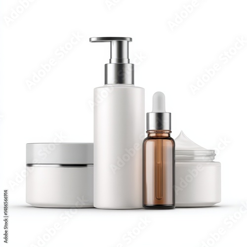 Elegant Skincare Product Set Lotion Bottle Cream Jar and Serum Dropper Modern and Clean Design for Luxury Beauty