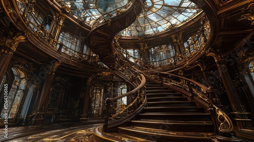 staircase, spiraling, wood, polished, interior, design, architecture, ornate, elegant, luxury, craftsmanship, detail, style, interior design, curved, art, light, glasses, artistic, historic, classic, beauty, grand, space, atmosphere, rich, texture, ambience, lighting, ceiling, contrast, vintage, enchanting, inviting, graceful, opulence, decorative, lavish, stunning, intricate, warm, timeless