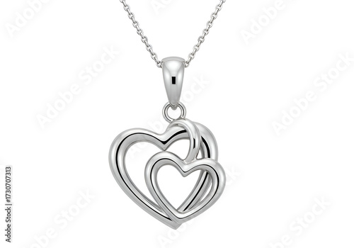 Elegant sterling silver double heart pendant necklace symbolizing enduring love and romance sparkling with refined detail. isolated on transparent background