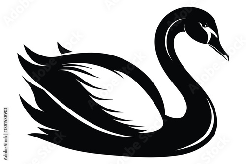 Elegant Swan Silhouette, Curving Neck, Graceful Feather Details, Black and White Design