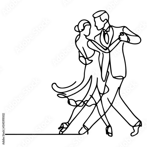 Elegant Tango Dance - Continuous Line Art