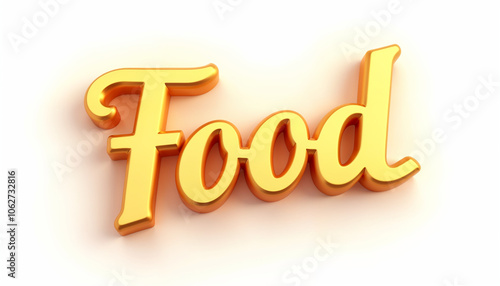 Elegant text 'Food' rendered in gold isolated on a white background