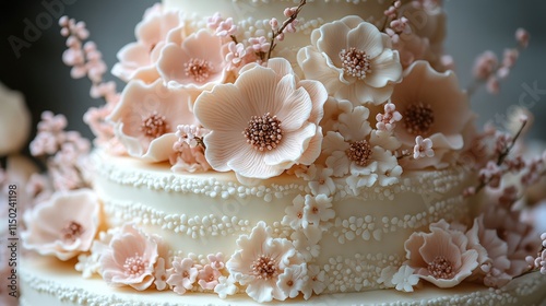 wedding, cake, flower, floral, sugar, paste, decoration, tiered, dessert, confectionery, elegant, beautiful, delicious, sweet, romantic, delicate, reddening, pink, white, ivory, frosting, artistry, craftsmanship, hand-made, sophisticated, celebration, event