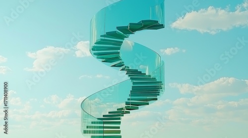 staircase, spiral, glasses, modern, architecture, design, minimalism, abstract, blue, cloud, elegance, structure, concept, artistic, perspective, creativity, upward, journey, interior, exterior, contemporary, luxury, calmness, path, curve, light, airy, fantasy, clear, innovative, beauty, aesthetic, movement, openness, visual, inspiration, stylish, clean, dream, unique, ascending, view, seamless, harmony