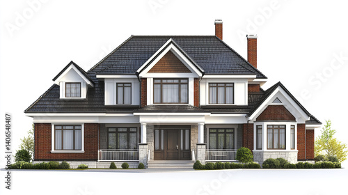 Elegant two story house with brick facade and gabled roof
