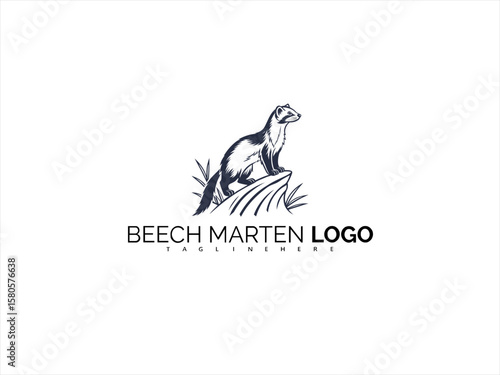 Elegant Vector Logo of a Beech Marten in Nature Pose. Stylish Wildlife Illustration in Black and White for Branding Outdoor Gear and Nature Products.