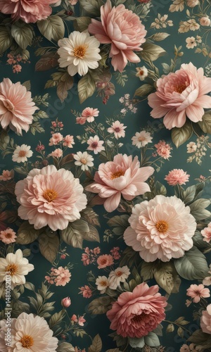 Elegant vintage floral wallpaper with faux blooms , floral print, retro, wallpaper texture