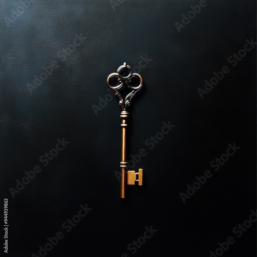 Elegant vintage key resting on dark surface, showcasing intricate design and craftsmanship, perfect for backgrounds and storytelling.