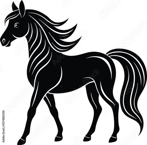 horse, silhouette, walking, black, vector, elegant, animal, mane, tail, pony, equine, wild, graceful, art, design, graphic, outline, template, symbol, pet, majestic, decorative, bold, flat, profile, stylish, motion, isolated, creature