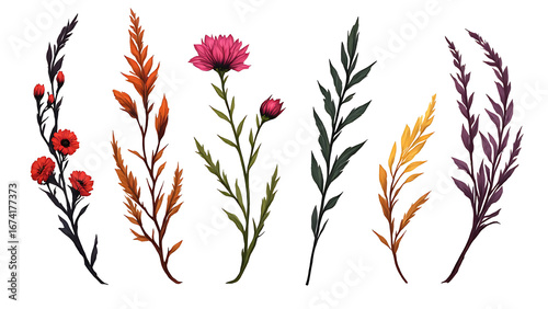 Elegant watercolor floral bouquet illustration featuring black, red, pink, white, orange, yellow, and purple flowers with lush green leaves, artistic floral frames, decorative borders, seamless 4K