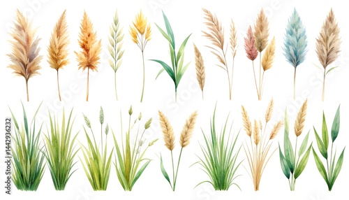 Elegant Watercolor Illustrations of Grass and Plant Elements for Nature and Design Projects