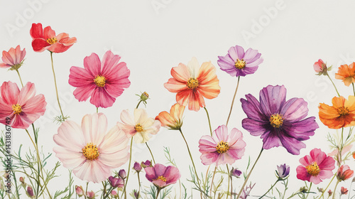 Elegant wedding invitation card background . Minimal hand painted watercolor Cosmos flowers texture template background. Design for wedding, vip cover, poster, rsvp moderncard.Valentine's Day