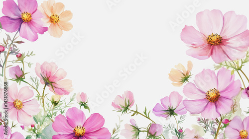 Elegant wedding invitation card background . Minimal hand painted watercolor Cosmos flowers texture template background. Design for wedding, vip cover, poster, rsvp moderncard.Valentine's Day