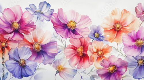 Elegant wedding invitation card background . Minimal hand painted watercolor Cosmos flowers texture template background. Design for wedding, vip cover, poster, rsvp moderncard.Valentine's Day