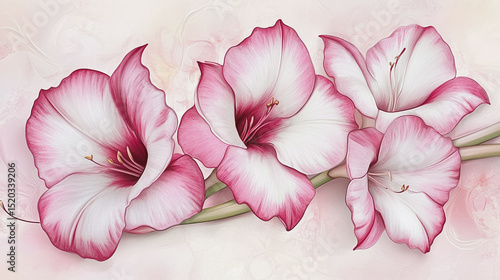 Elegant wedding invitation card background . Minimal hand painted watercolor Gladiolus flowers texture template background. Design for wedding, vip cover, poster, rsvp moderncard.Valentine's Day