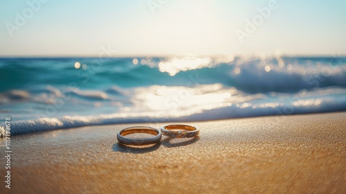 wedding, ring, beach, ocean, sand, marriage, symbol, love, nature, romance, summer, coast, engagement, human relationships, ceremony, passion, sunlight, water, horizon, couple, travel, joyful, beautiful, unforgettable, memory, decoration, gold, silver, oneness, bliss, serene, tranquil, design, fashion, jewellery, art, closeup, detail, scene, lifestyle, symbolism, event, relaxing, scenic, coastal, peaceful, atmosphere