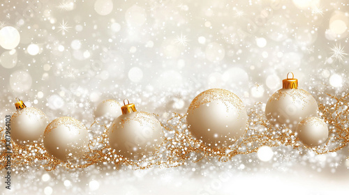 Elegant white and gold Christmas background with a serene and peaceful ambiance, featuring a soft glow that evokes feelings of warmth, joy, and celebration during the holiday season