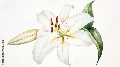 Elegant White Lily: A Captivating Botanical Illustration Celebrating Nature's Beauty