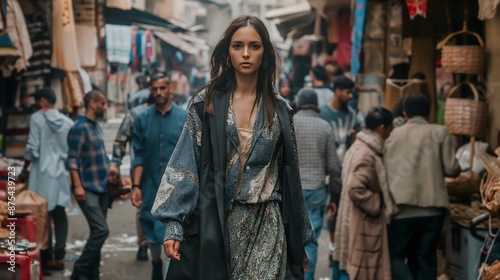 elegant, woman, street, market, traditional, attire, bustling, fashion, urban, culture, people, walking, shopping, stall, tied-up, crowded, city, lifestyle, female, beauty, style, clothing, ethnic, local, commerce, trade, seller, pedestrian, diversity, textile, fabric, accessory, earring, portrait, daytime, young, adult, atmosphere, movement, casual attire, wear, exotic