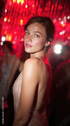 elegant, woman, sparkling, evening, event, fashion, glamour, red, light, portrait, party, style, beauty, dress, nightlife, social, chic, festive, celebration, fashionable, glamourous, attractive, alluring, sophisticated, modern, feminine, photogenic, trendy, radiant, stylish, dazzling, luxurious, night, gathering, fun, lively, dynamic, energetic, sultry, poised, confident, seductive, vibrant, enchanting