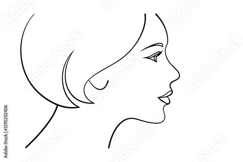 Elegant Woman Profile Vector Line Art Illustration Isolated On White Background