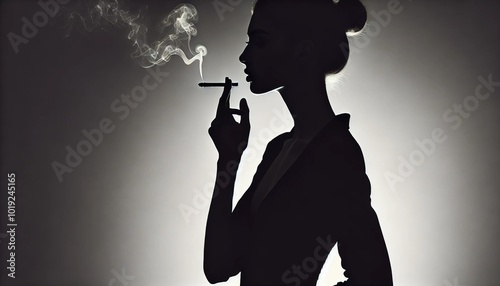 silhouette, smoke, relax, monochrome, long hair, smoke, woman, black, illustration, person, people, profile, 1, gun, vector, beauty, head, face, drink, hand, wine
