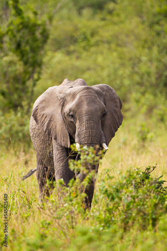 Elephant grazing on the open savannah of the Masai Mara, Kenya