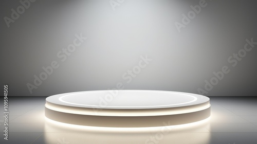 Elevated Circular Podium in a Well-Lit Studio Environment Perfect for Presentations, Events, and Display Purposes Featuring Soft Lighting Effects