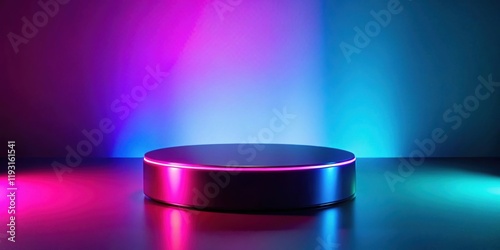 dais, platform, stage, display, showcase, product, presentation, background, vibrant, neon, colours, lighting, illumination, glow, shine, futuristic, modern, abstract, circular, cylindrical