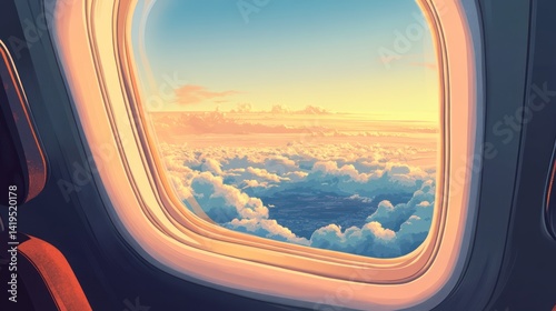 sunrise, sunset, cloud, sky, plane, aeroplane, window, view, travel, journey, flight, horizon, atmosphere, landscape, vista, elevation, perspective, altitude, light, warmth, gold, orange, hue, colours, pastel, passenger, cabin, interior, comfort, destination, adventure, exploration, freedom, escape, immensity, expanse, serenity, peace, calmness, moment, beautiful, breathtaking, amazing, nature