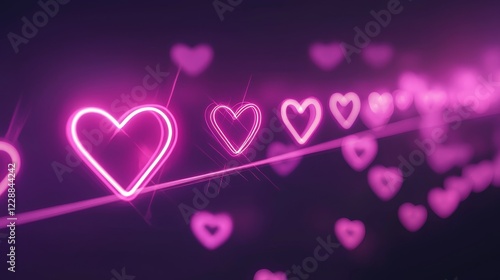 Email divider with a line of subtle pulsing neon heart icons, glowing in soft pink, creating a cohesive and romantic break between sections