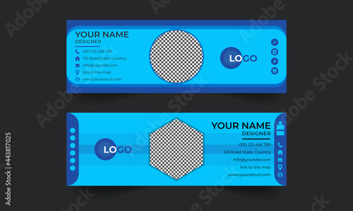 Email footer with a set of banners with icons. Stylish blue color email signature Template.
