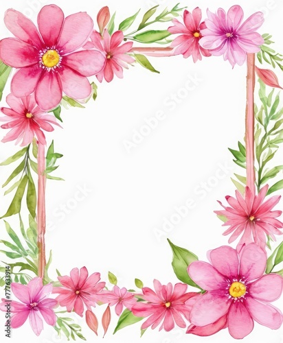 Embrace elegance with our watercolor pink floral frame mockup. Soft petals form a delicate border, perfect for showcasing your content