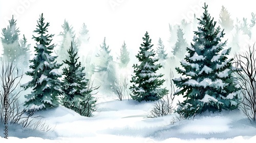landscape, snow, winter, nature, watercolor, forest, christmas, background, season, tree, illustration, holiday, fir, card, white, cold, green, wallpaper, art, pine, wood, drawing, new year, design, scene, spruce, snowy, print, poster, isolated, graphic, blue, december, decoration, texture, timberland, travel, year, merry, wild, frost, evergreen