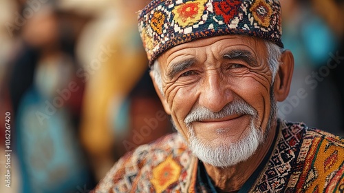 blurred background, appreciation, respect, elderly, smiling, heritage, tradition, wisdom, nostalgia, diversity, facial expression, community, identity, dignified, connection, warmth, celebration, intercultural