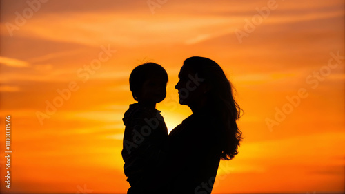 Embracing sunset silhouette of a mother and child beach photography warm colors close-up love
