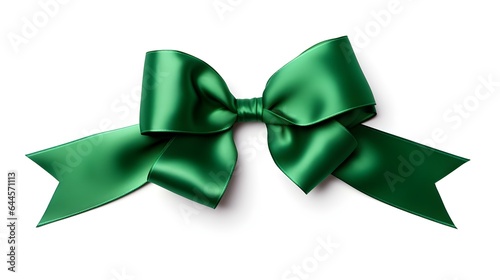 Emerald Gift Ribbon with a Bow on a white Background. Festive Template for Holidays and Celebrations